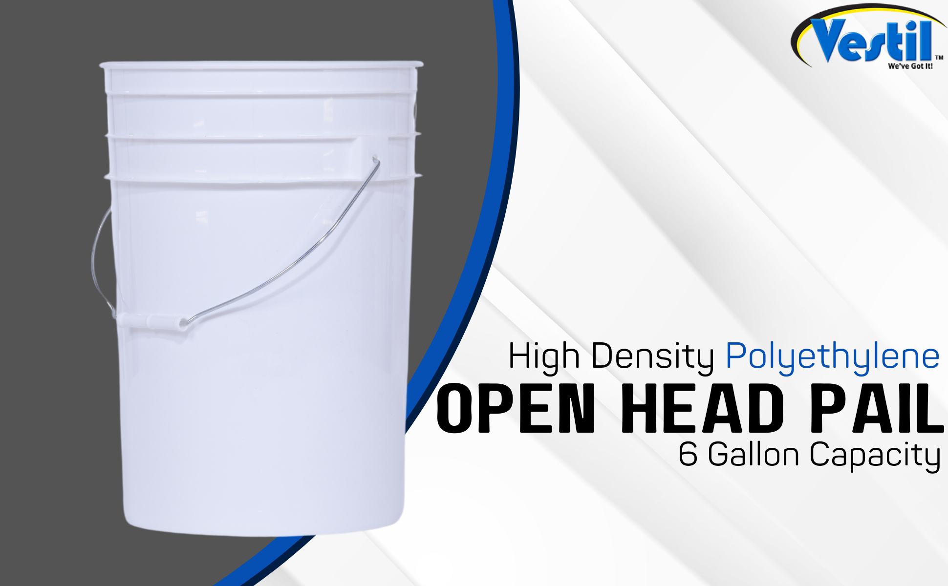 PAIL-1-PWP-180PK PAIL-1-PWP-180PKHigh Density Polyethylene Open Head Pail with Plastic Handle 180 Pack 7-1/2 In. x 7-1/2 In. x 7-1/2 In. 1 Gallon WhiteUniform Capacity (gal.): 1