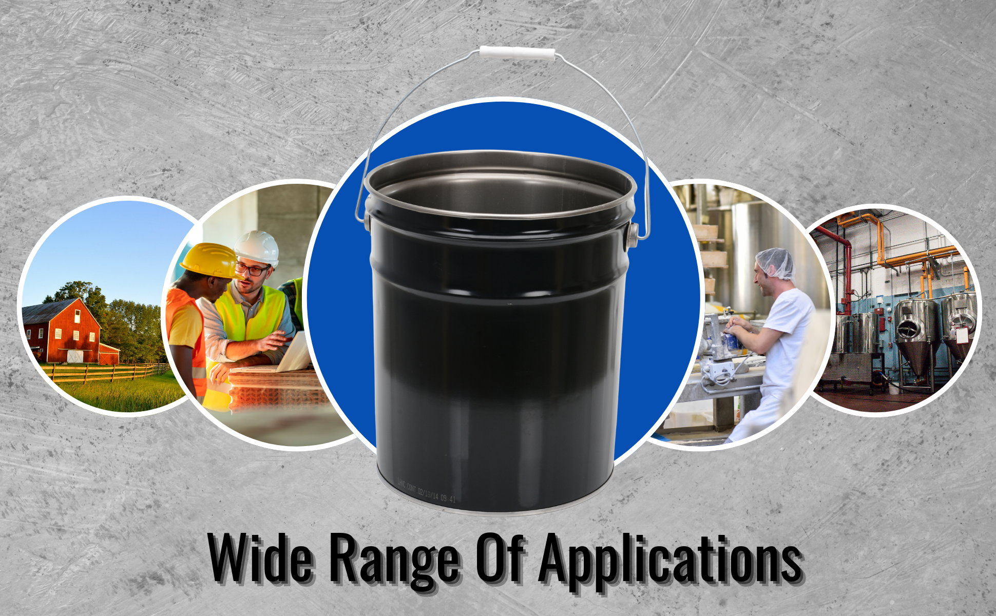 PAIL-STL-RI-UN PAIL-STL-RI-UNSteel UN Rated Pail 11-3/4 In. x 11-3/4 In. x 13-3/8 In. 5 Gallon BlackGauge Between: 24/28
