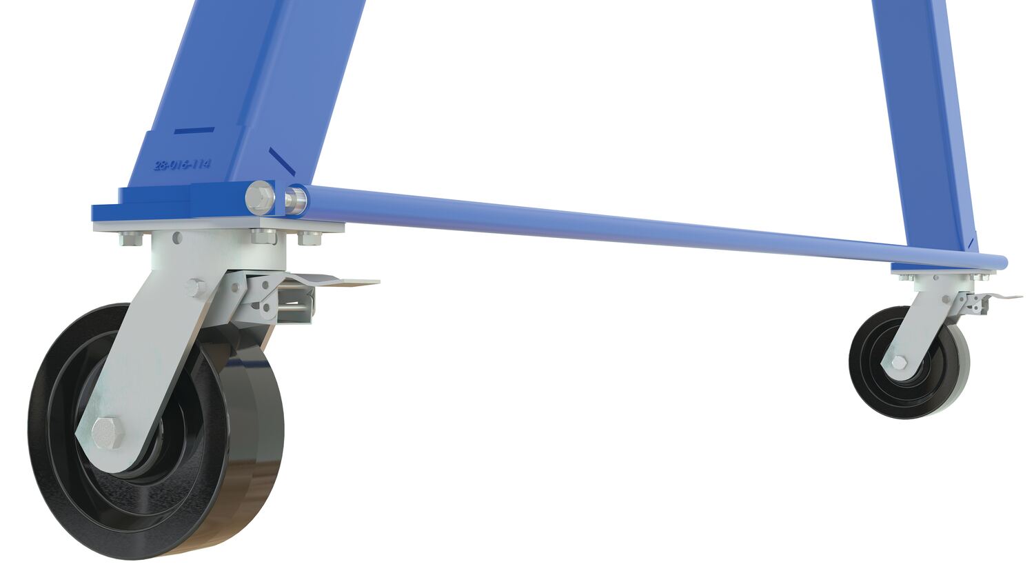 The adjustable height steel gantry crane is designed for transporting and positioning materials along the beams length. The cranes beam height can be adjusted to better conform to the working conditions making it both ergonomically friendly and cost effective. Unit comes standard with total locking casters. Height is adjustable in 6" increments. Do not move units while loaded. Hoist and trolley can be ordered separately. A painted blue finish protects the unit. Designed for semi-permanent or permanent applications.