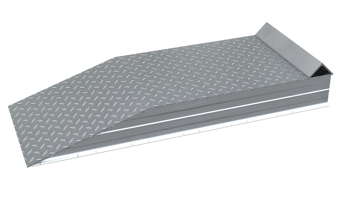 Aluminum Tread Plate Wheel Riser with Roll Off Guard 72 In. x 24 In. x 14-1/16 In. 30000 Lb. Capacity SilverA standard wheel riser is a great asset to have available when working in the shipping and receiving industries. But, this wheel riser is more than standard. With an aluminum construction, this unit includes a roll off edge guard that acts as a stop point. This allows the user to safely mount the wheel riser without the fear of going too far. The raised tread surface gives added traction throughout the ascending and descending action.
