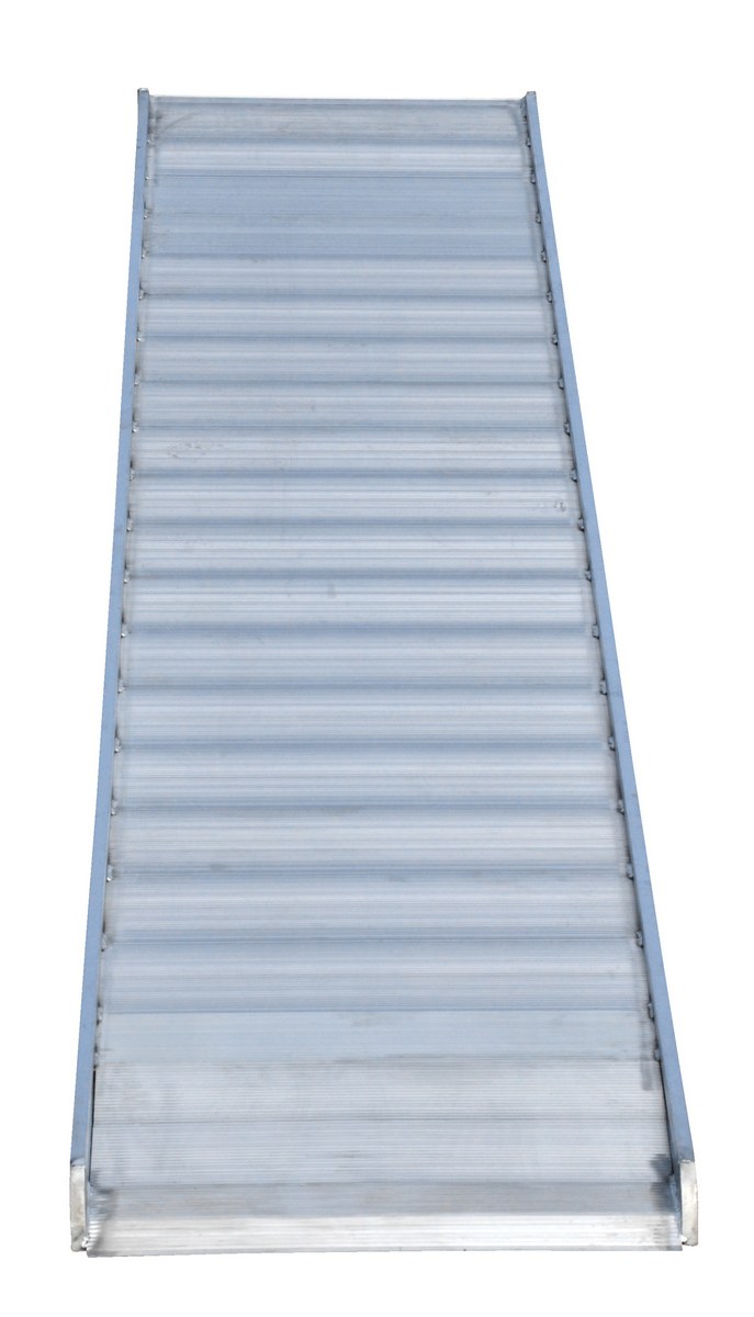 The Aluminum Walk Ramp enables delivery men/women, shippers, and receivers to load and unload trucks when docks are unavailable. Heavy-duty steel chains with steel grab hooks are attached to each side of ramp for safely securing ramp to truck. Constructed of strong aluminum alloy with non-skid tread surface. The ramp is lightweight and easy to handle. This overlapping style rests on the truck bed.