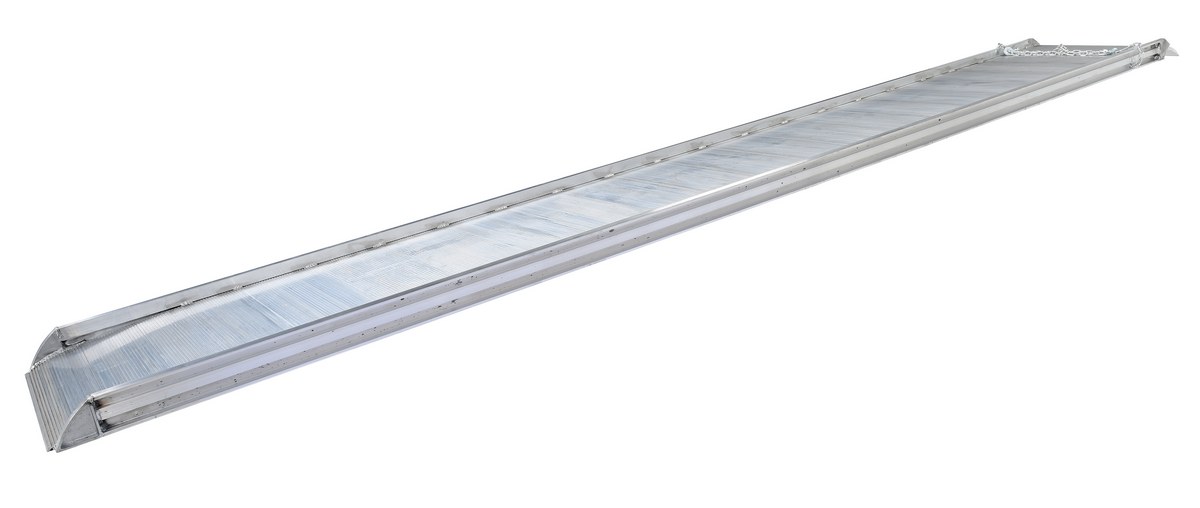 The Aluminum Walk Ramp enables delivery men/women, shippers, and receivers to load and unload trucks when docks are unavailable. Heavy-duty steel chains with steel grab hooks are attached to each side of ramp for safely securing ramp to truck. Constructed of strong aluminum alloy with non-skid tread surface. The ramp is lightweight and easy to handle. This overlapping style rests on the truck bed.