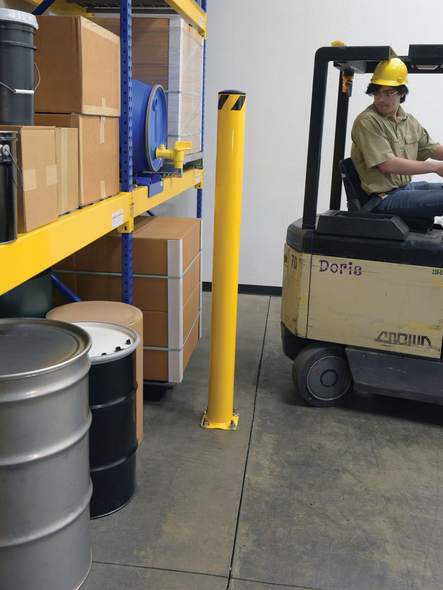 Safety bollards protect both objects and personnel. With a robust design the bollard can be used in a variety of settings, while enduring harsh conditions. Cap is removable and made of plastic. Powder coat finish for baked in added toughness.