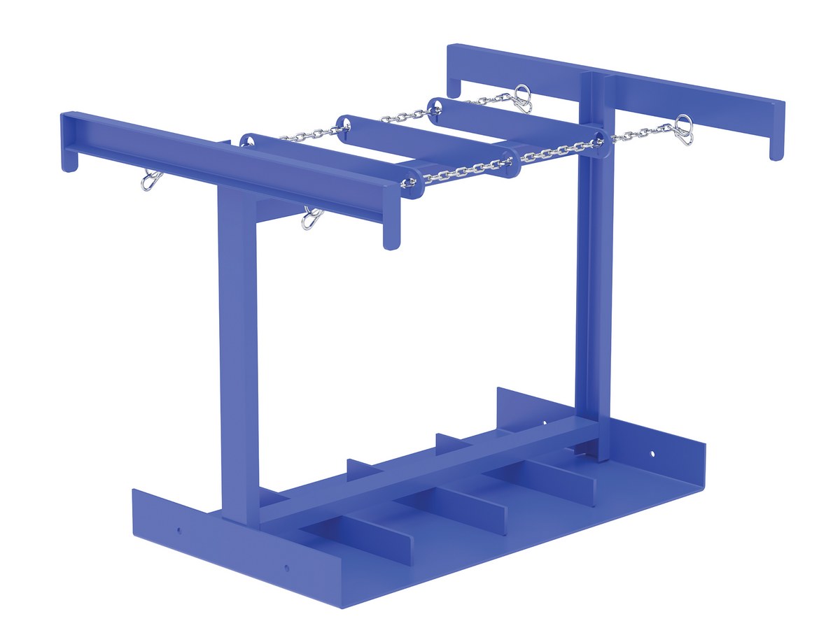 Steel Cylinder Caddy 8 Maximum Cylinders 800 Lb. Capacity BlueA Cylinder caddy transports cylinders safely with this fork mounted style. This unit comes complete with safety chains to secure the cylinders in place. The optional caster kit allows for portability without the need of a fork truck or pallet truck.