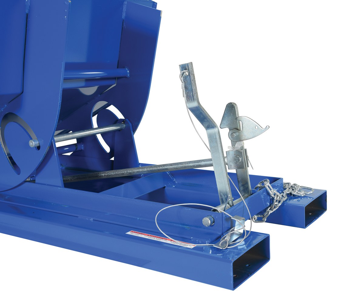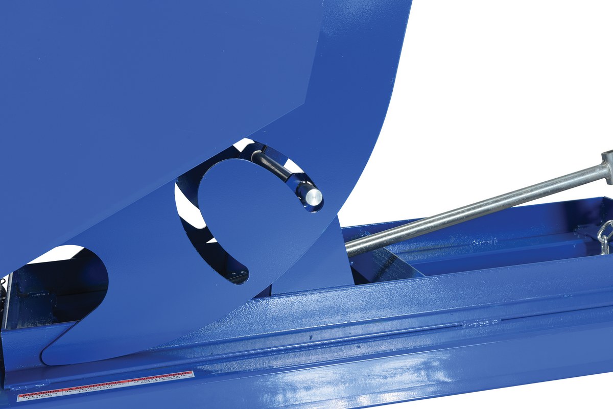 This Heavy Duty self-dumping steel Hopper with bumper release automatically dumps when bumper release contacts the front of the dumpster. Hopper returns to an upright and locked position automatically after it dumps. Also includes a cable that may be operated from the seat of the fork truck to manually dump the hopper. The included safety restraint should be properly secured to a fork truck before dumping. (Length dimension is measured at top of chute.) Hopper is stackable if you stack the top hopper turned ninety (90) degrees from the bottom. Self-dumping hoppers facilitate compliance with OSHA general industry rule 29 CFR 1910.178(m)(5)(iii) by allowing lift truck operators to remain at the controls of their truck throughout the dumping process.