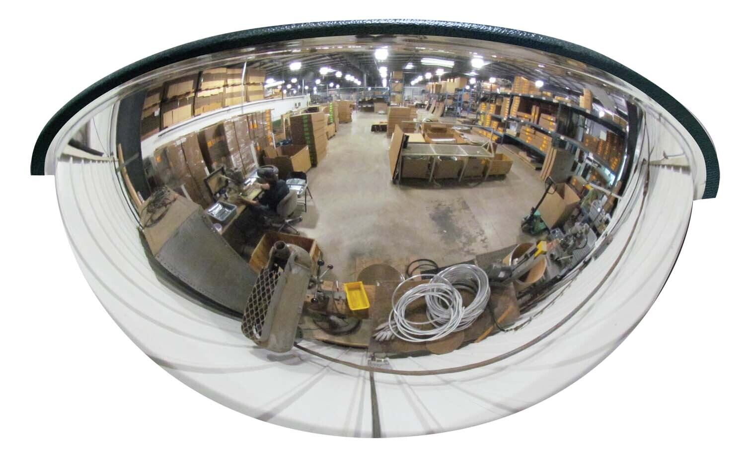 Acrylic Industrial Dome Mirror 20 In. Diameter 180 Degrees Distance Covered 20+ Ft. Viewing Distance SilverThe dome mirror is perfect for any high traffic industrial area. The crisp clear reflection allows for additional safety when entering blind spots. A lightweight design enables mirrors to be hung in a variety of places ensuring surveillance in the most hazardous of places. Hanging hardware is included.