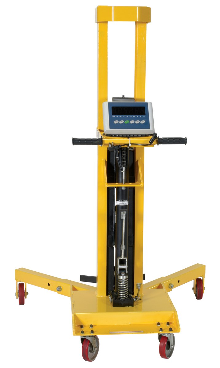 The portable drum jacks are the perfect solution to any of your drum transporting needs. The steel constructed compact design allows for maximum maneuverability in restrictive areas. The unit can lift, transport, and weigh 30, 55, and 85 gallon steel, fiber, and plastic drums. Scale head features automatic turn-off and +/-0.5 lbs. accuracy. Scale is powered with AA batteries. AC adapter included.