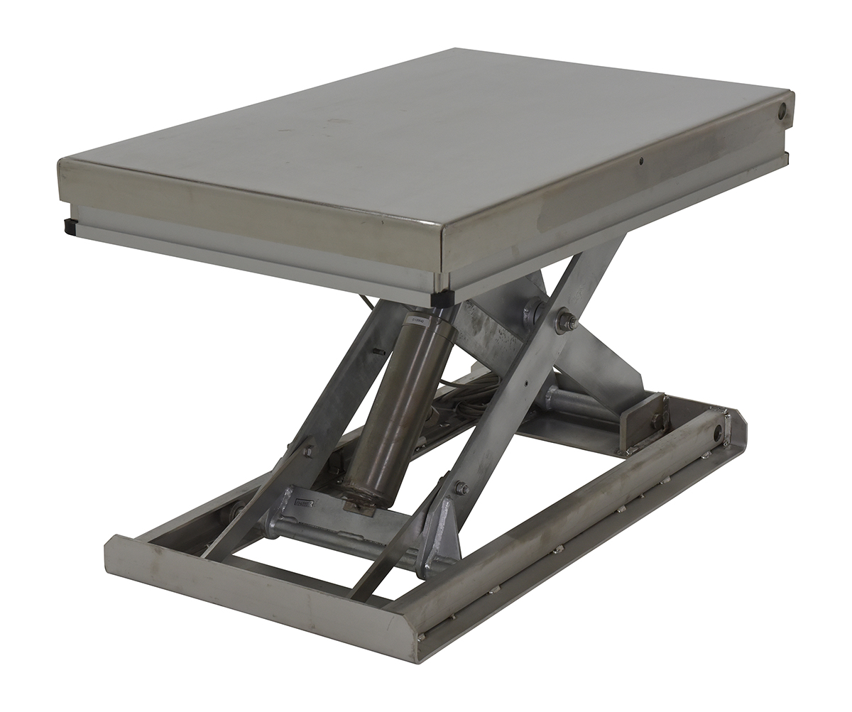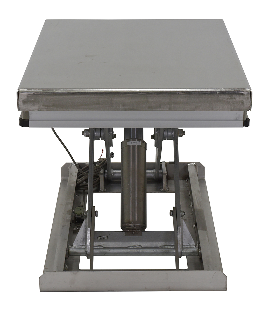 The work station electric hydraulic scissor table is designed to raise products up to an ergonomic working height. It maximizes safety with minimum space requirements and is ideal for all types of manufacturing and warehouse facilities. The external power unit can be located eight (8) feet away from the unit and comes with a standard hand control. An electric toe guard also comes standard with the unit.