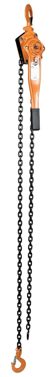 The economy lever hoist is ideal for lifting and pulling applications. It features a completely enclosed Weston-type automatic brake system for precise load positioning. This hoist is constructed from cold-formed stamped steel, which confers great strength, impact resistance and long product life. Durable baked enamel paint shields non-wearing parts from environmental damage. Single-hand "free chaining" is simple and convenient allowing smooth, trouble-free operation in the vertical or horizontal position. Both the swivel hooks include deformation indicators. Every chain hoist is issued with an individual test certificate.