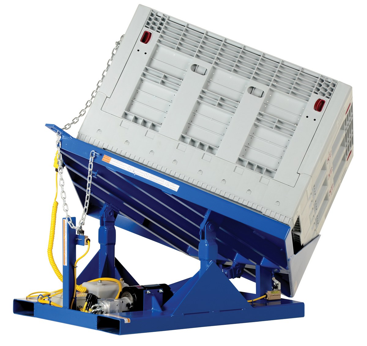 • Corner tilt design can tilt pallets, crates, boxes, and baskets