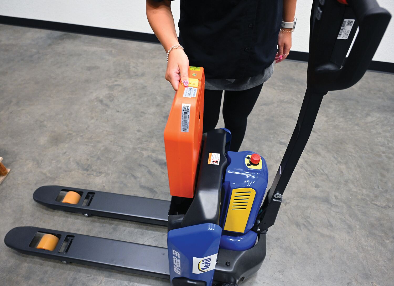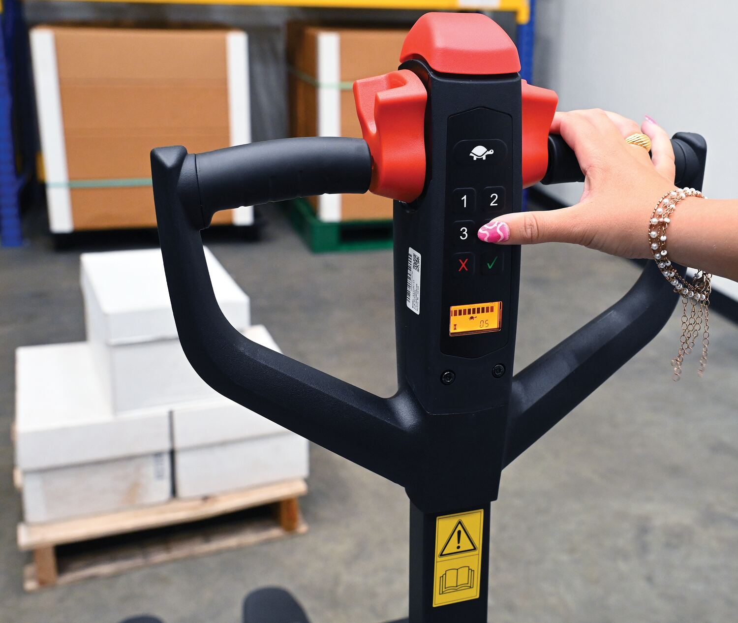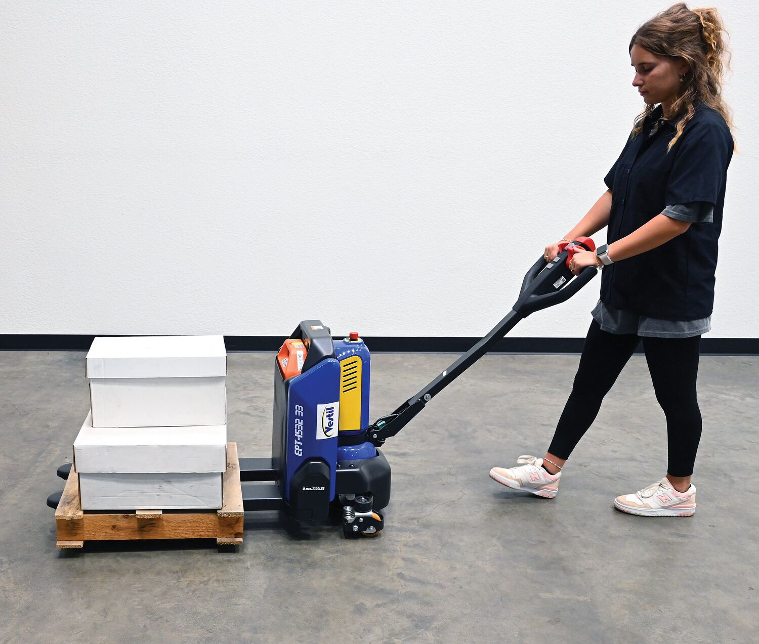 • Fully-powered pallet truck makes movement of pallets quick and easy