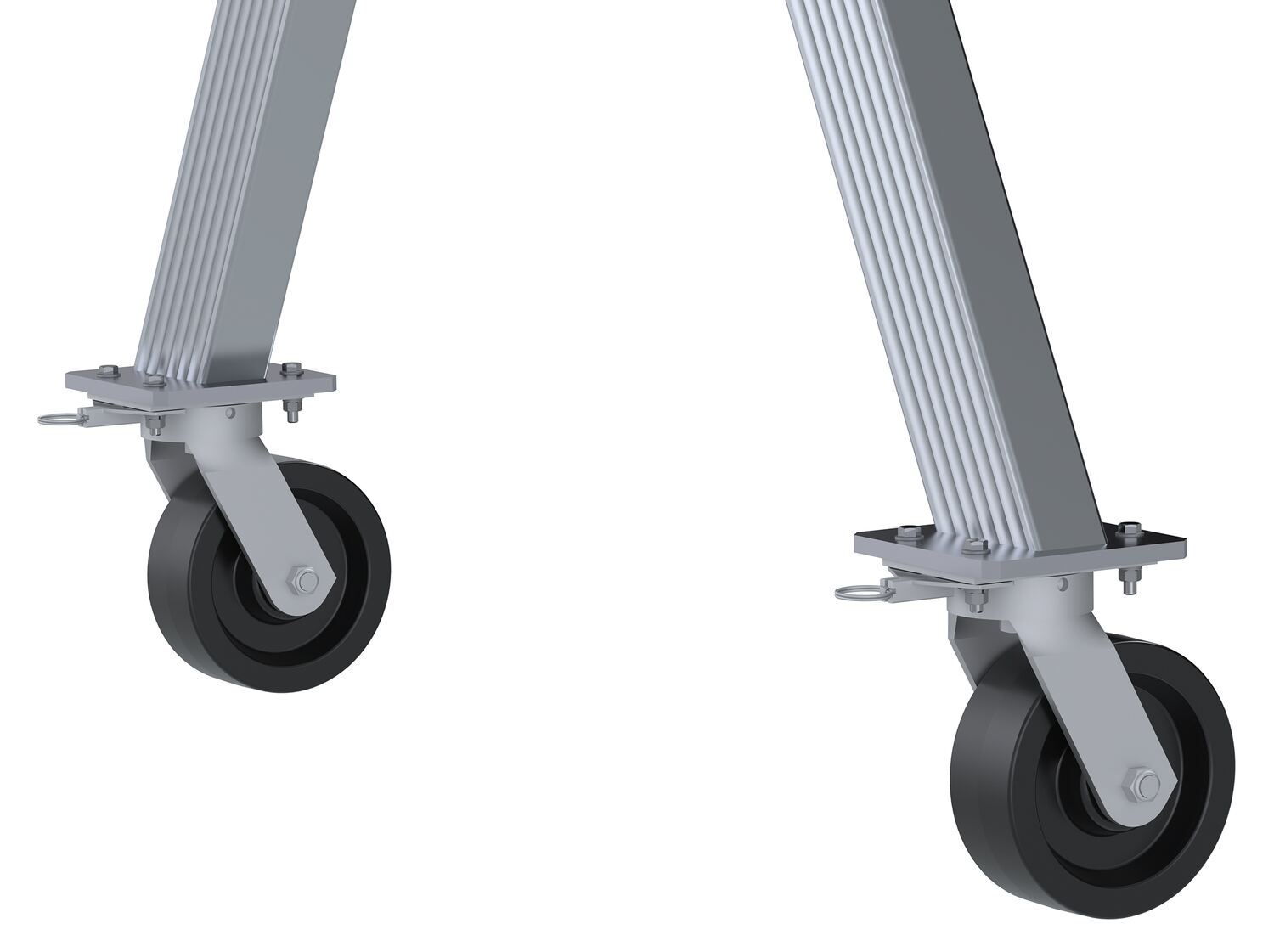 Caster Quantity/Diameter/Width (in.): (4) 8 x 3 Caster Type: Swivel (4) Position Locking Casters Caster Material: Phenolic