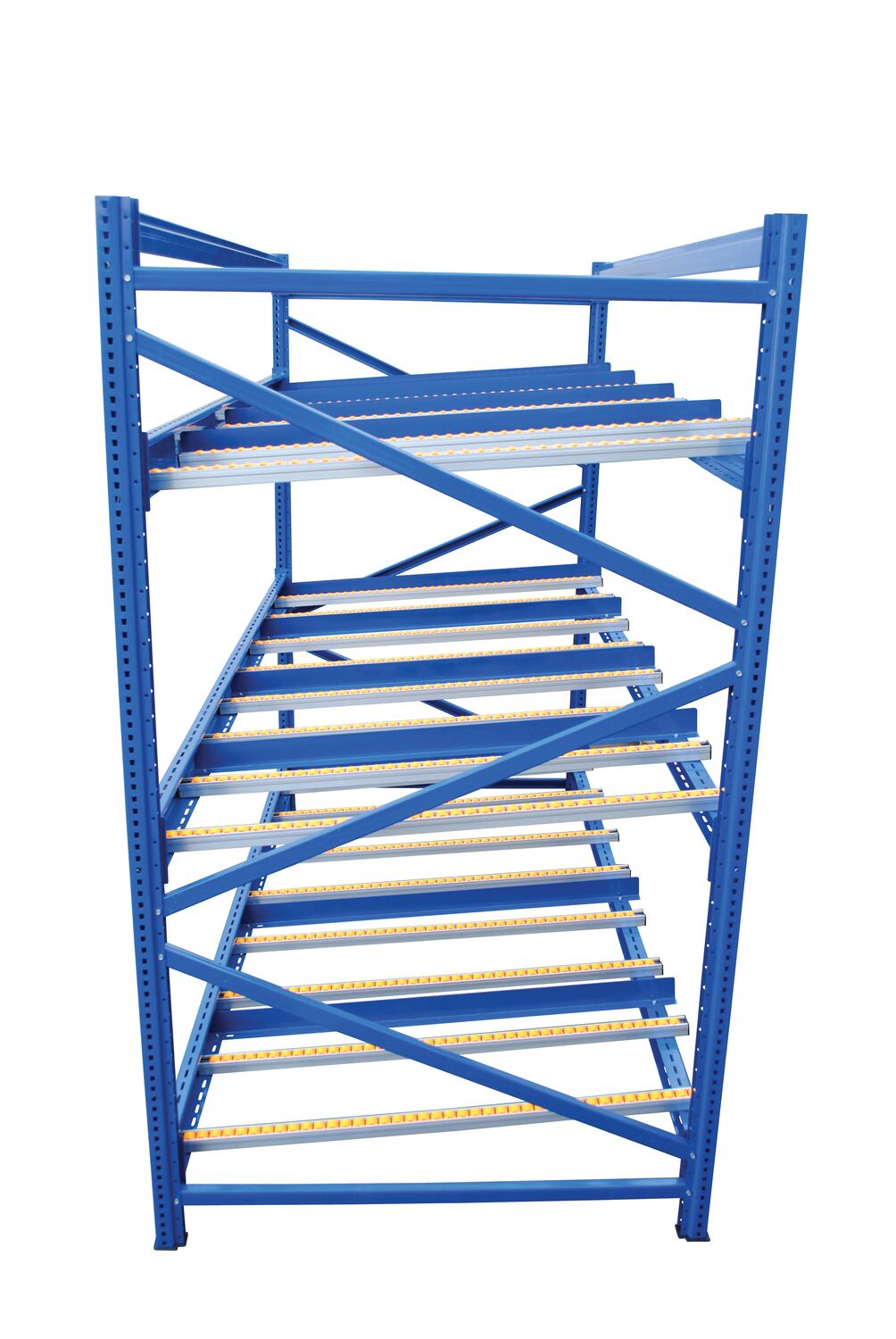 With the carton Flow Rack, cartons are gravity fed on rollers for convenient first in - first out stock rotating. Choose the quantity of levels that best fits your application. Each level includes four (4) pairs of rollers and each level also includes five divider sections. Units can be bolted together for additional depth.