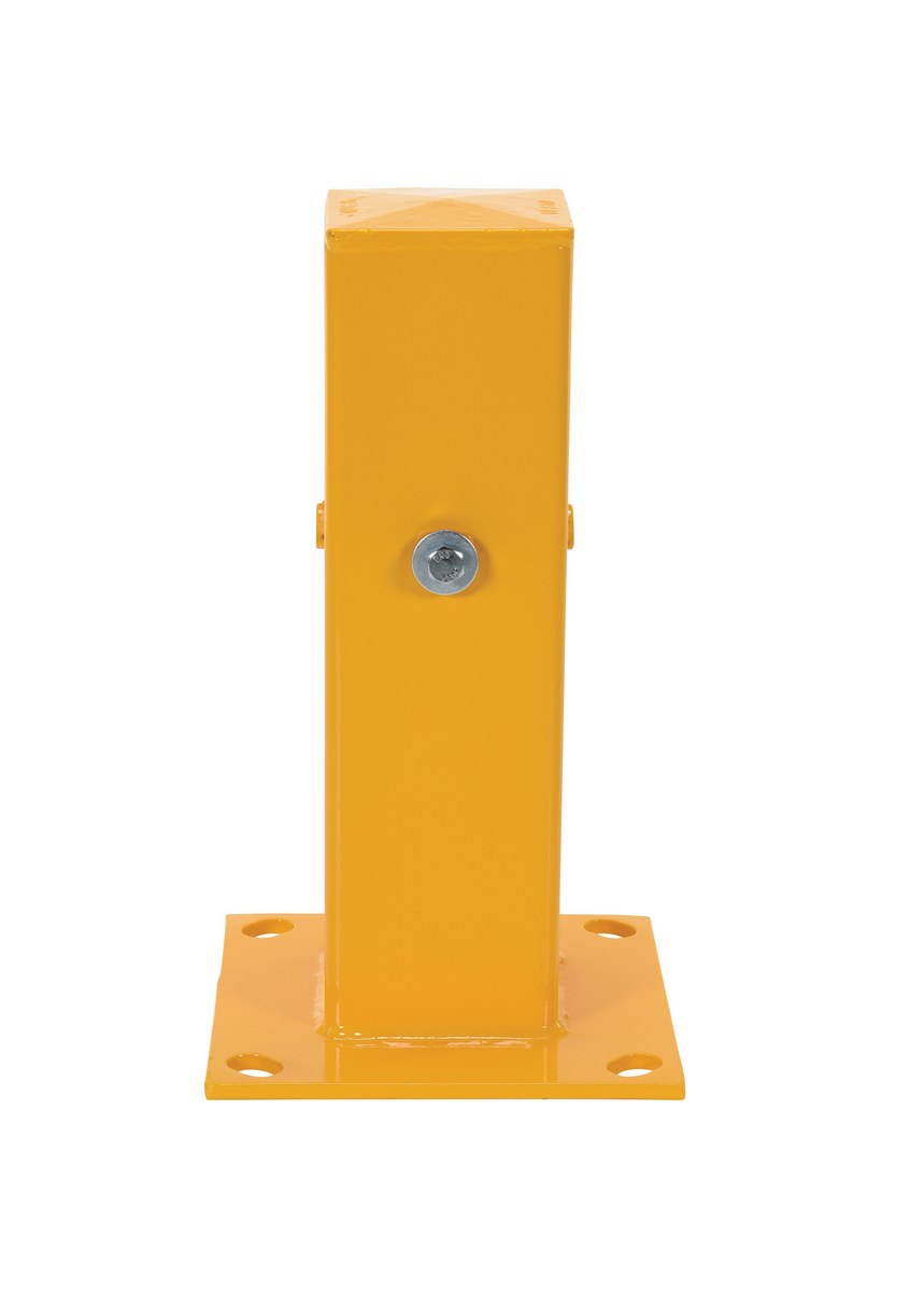 Steel Drop In Tubular Guard Rail Post 18 In. Length YellowThe Tubular post is an addition to the guard rail system. The post is designed with a steel construction for the utmost support strength. The yellow finish allows the post to be both visible and weather resistant. Includes mounting holes on three sides for use as a corner or center post.