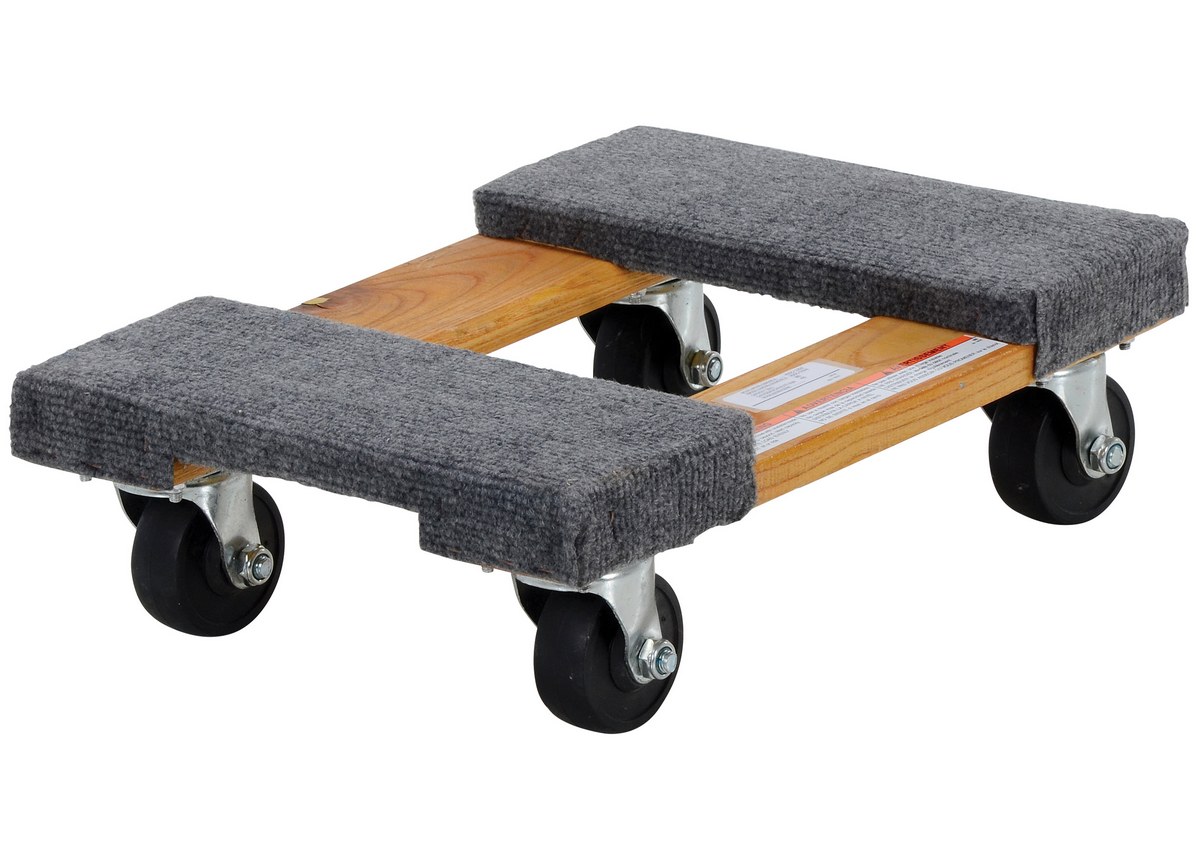 Hardwood Carpet End Dolly 18 In. x 12 In. x 5 In. 900 Lb. CapacityThe Hardwood dolly transports boxes, crates, or supplies. Carpet color may very. Unit maneuvers on casters. Optional pull strap or hook available.