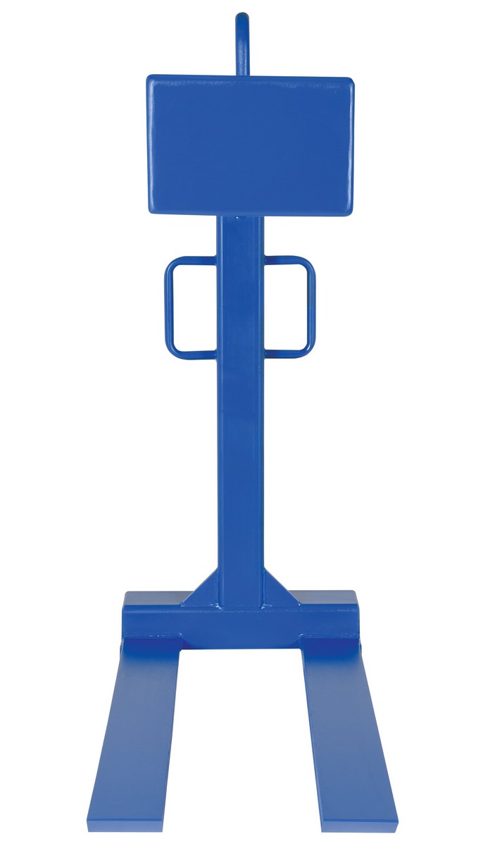 This solid steel pallet lifter contains tapered forks to allow easy access under pallets. Main support contains handles to allow personnel to position the unit. Large square head serves as a counterweight to keep the unit level without a load.
