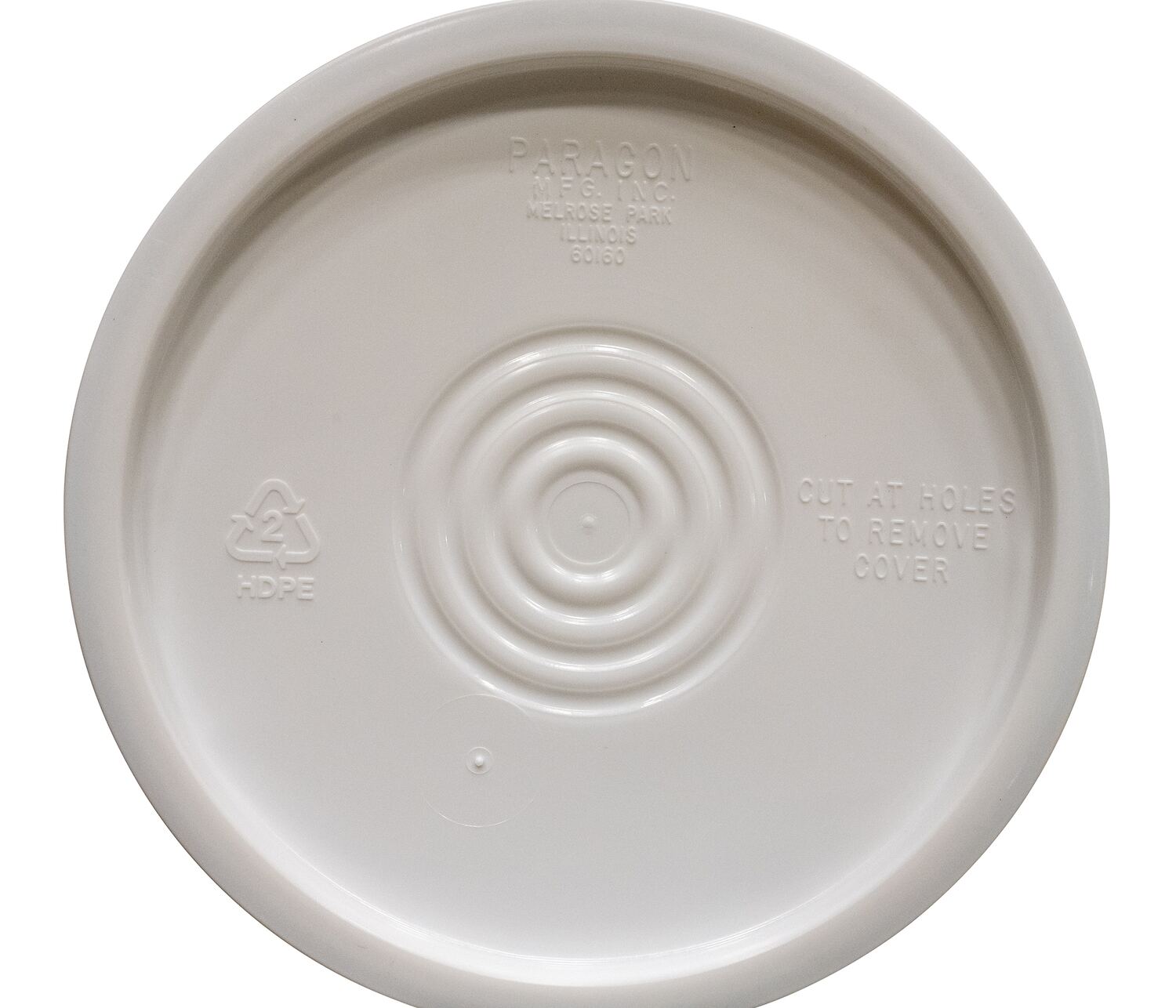 Plastic lid for use with plastic pail. This plastic lid is constructed of one-hundred percent (100%) prime virgin high density polyethylene (HDPE) and comply with FDA regulations. Suitable for shipping according to D.O.T. Standards.