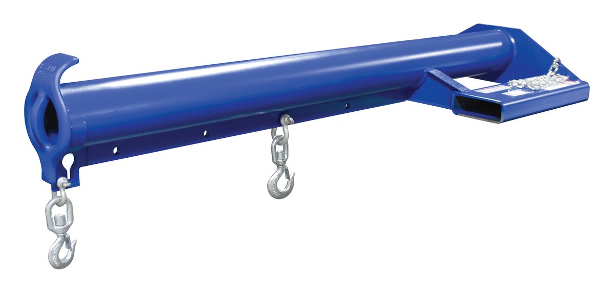 Unique performance, convenience, and safety features are built into every lift master boom. Fabricated from structural steel with welding to meet AWS creates a rugged and durable boom that will provide long term service. A safety restraint secures the boom to the fork truck for safe operation. Includes two (2) lifting hooks.