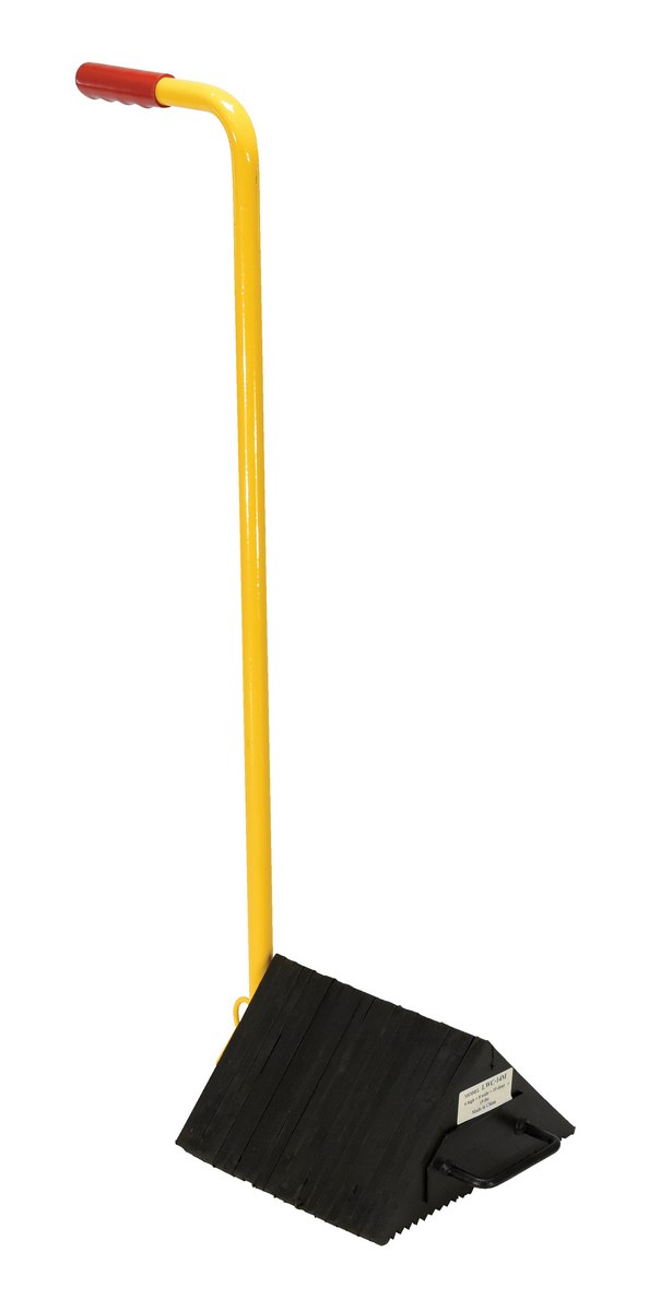 Laminated Rubber Wheel Chock with Ergonomic Handle 10-1/8 In. x 20-3/16 In. x 34-15/16 In. Black / Yellow
