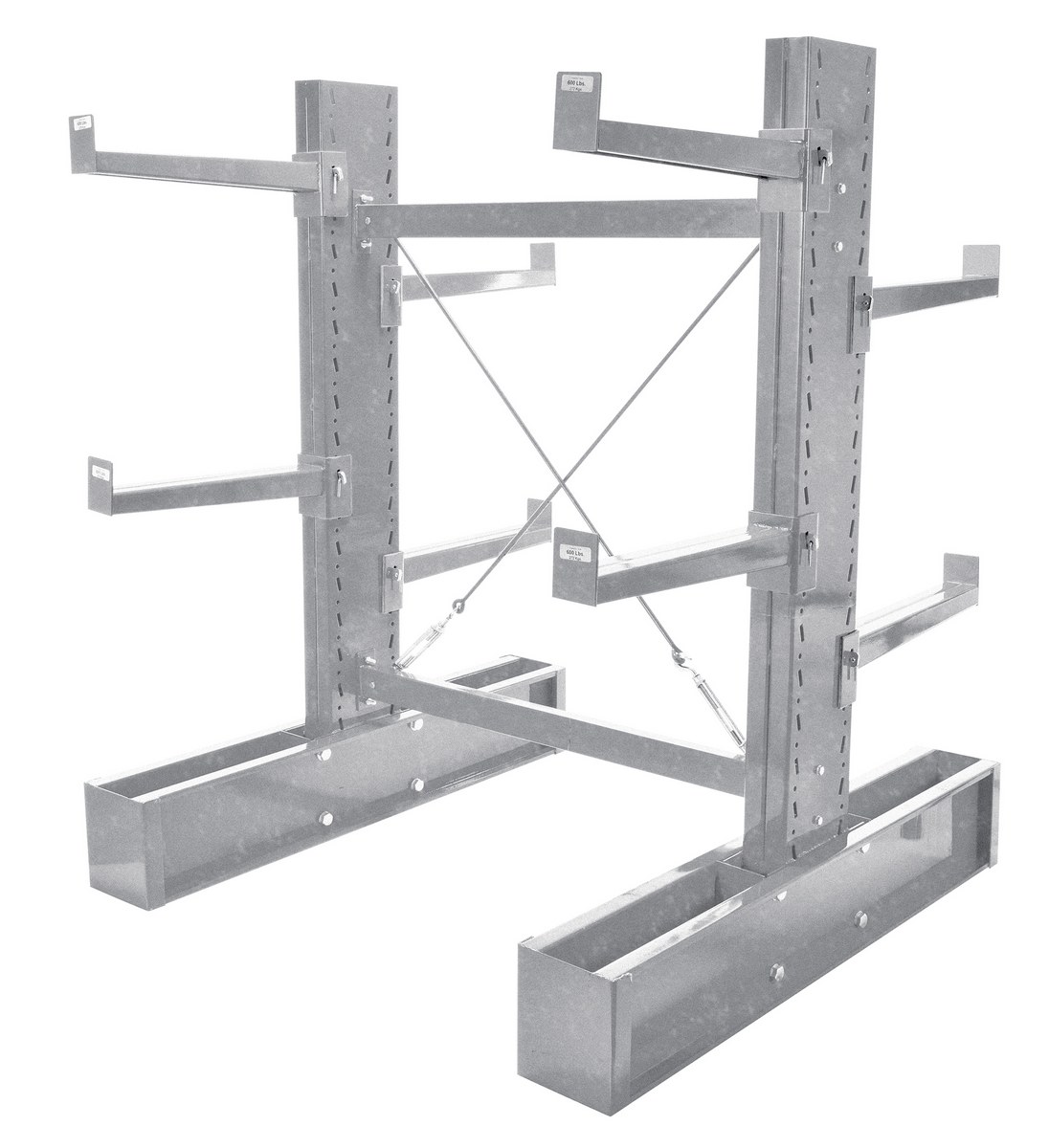 Galvanized Medium Duty Double Sided Cantilever Rack Set 36 In. Arms 16,400 Lb. Capacity Silver