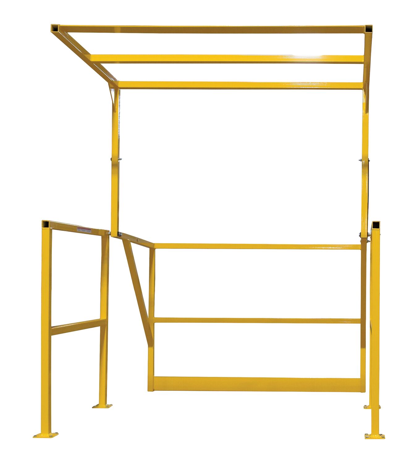The mezzanine safety gate provides an OSHA required handrail, mid-rail and kick plate for mezzanine without sacrificing load accessibility. To accommodate the maximum load height, when utilizing a standard pallet, load positioning within the gate is critical. For greatest amount of clearance and item placement flexibility, shorter loads are recommended. The gate rotates and design is balanced to allow for easy operation without use of springs.