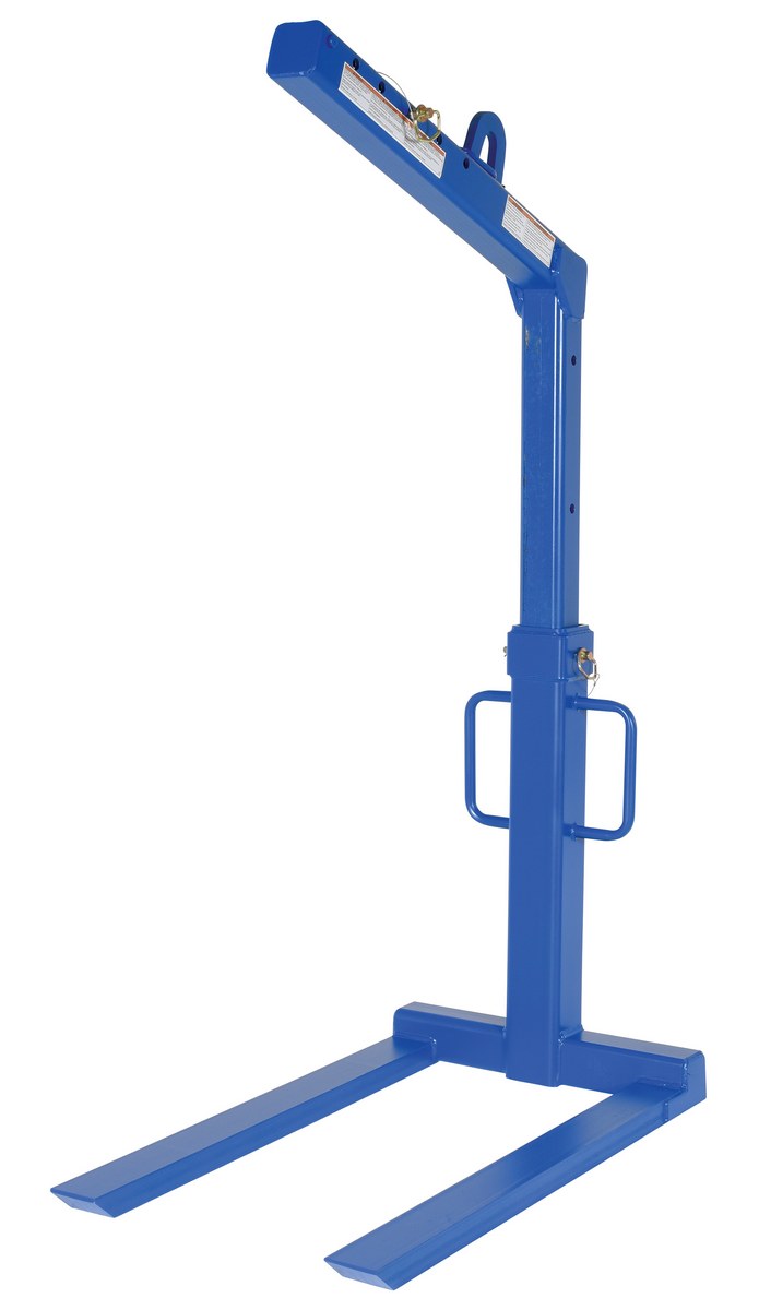 The overhead load lifter is designed for lifting and moving pallets, skids and crates with an overhead lifting crane. Includes an adjustable bail for keeping the load level when moving. Includes three (3) height positions for use with different sized loads.