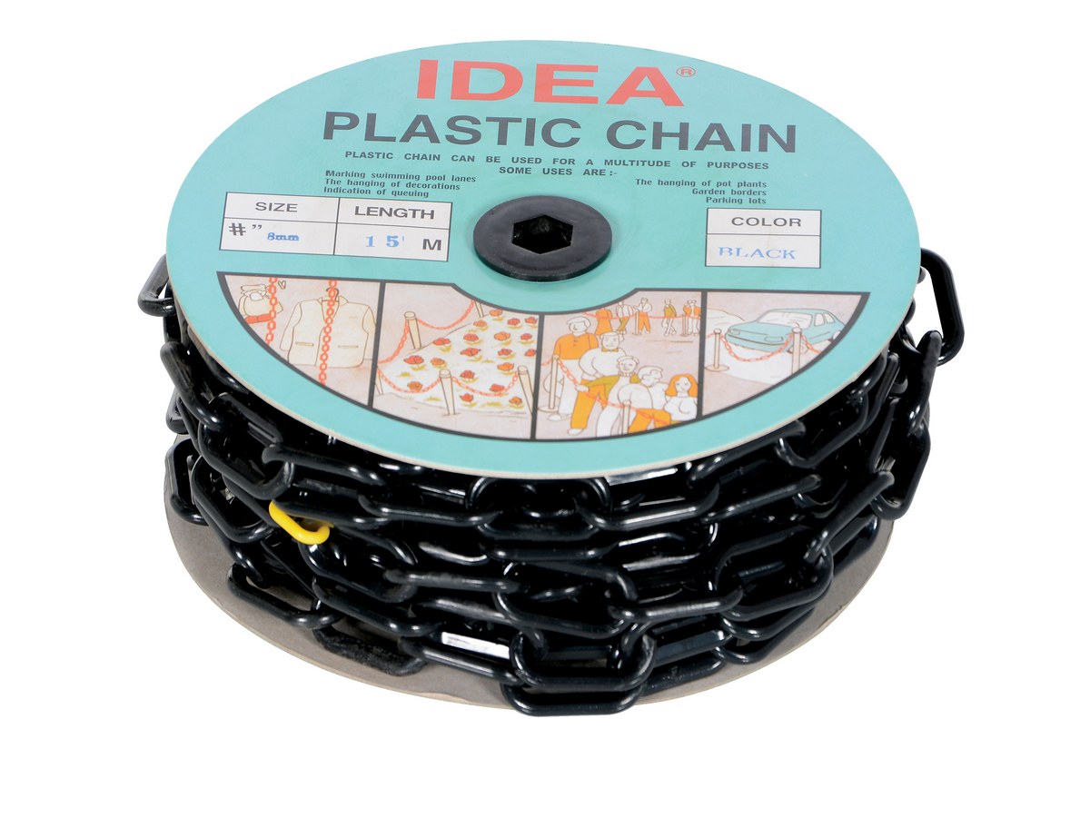 Plastic Chain Barricade 2 In. x 2 In. BlackPortable and lightweight plastic chain barricade is easy to position where needed most. Chain simply snaps onto post hooks. Unit is easy to assemble with snap-together parts.