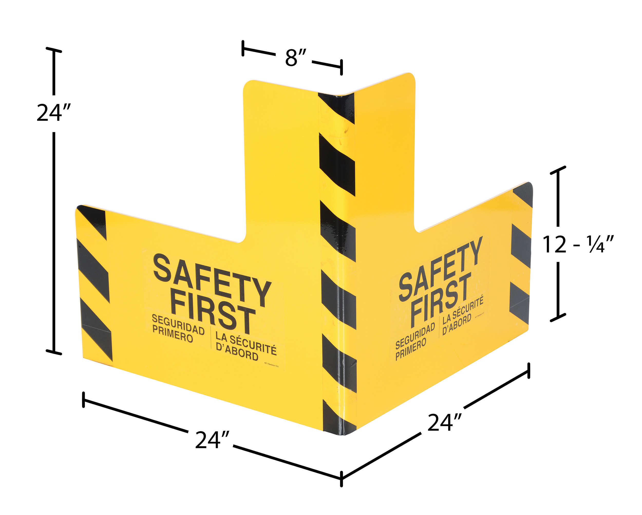 Protect busy corners, expensive machinery and personnel with this corner guard and its perpendicular protection. "Safety first" promotion reminds personnel of the number one priority.