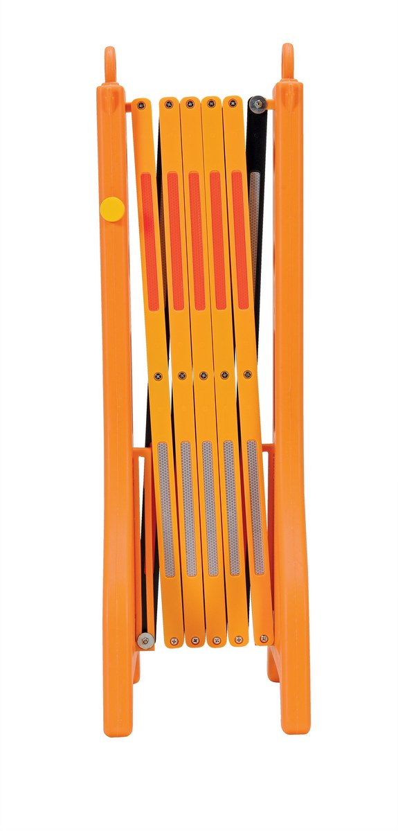 Expand-A-Gate is designed to set up quickly and easily wherever and whenever they are needed. Ideal for preventing potential accidents. Lightweight design allows personnel to quickly retrieve the gate and limit access to unsafe areas. Smooth operating scissor action. Interlocking and nestable. Constructed of heavy-duty molded yellow and black plastic. One side of gate includes reflectors for better visibility. End pieces are hollow and may be filled with liquid for added weight.