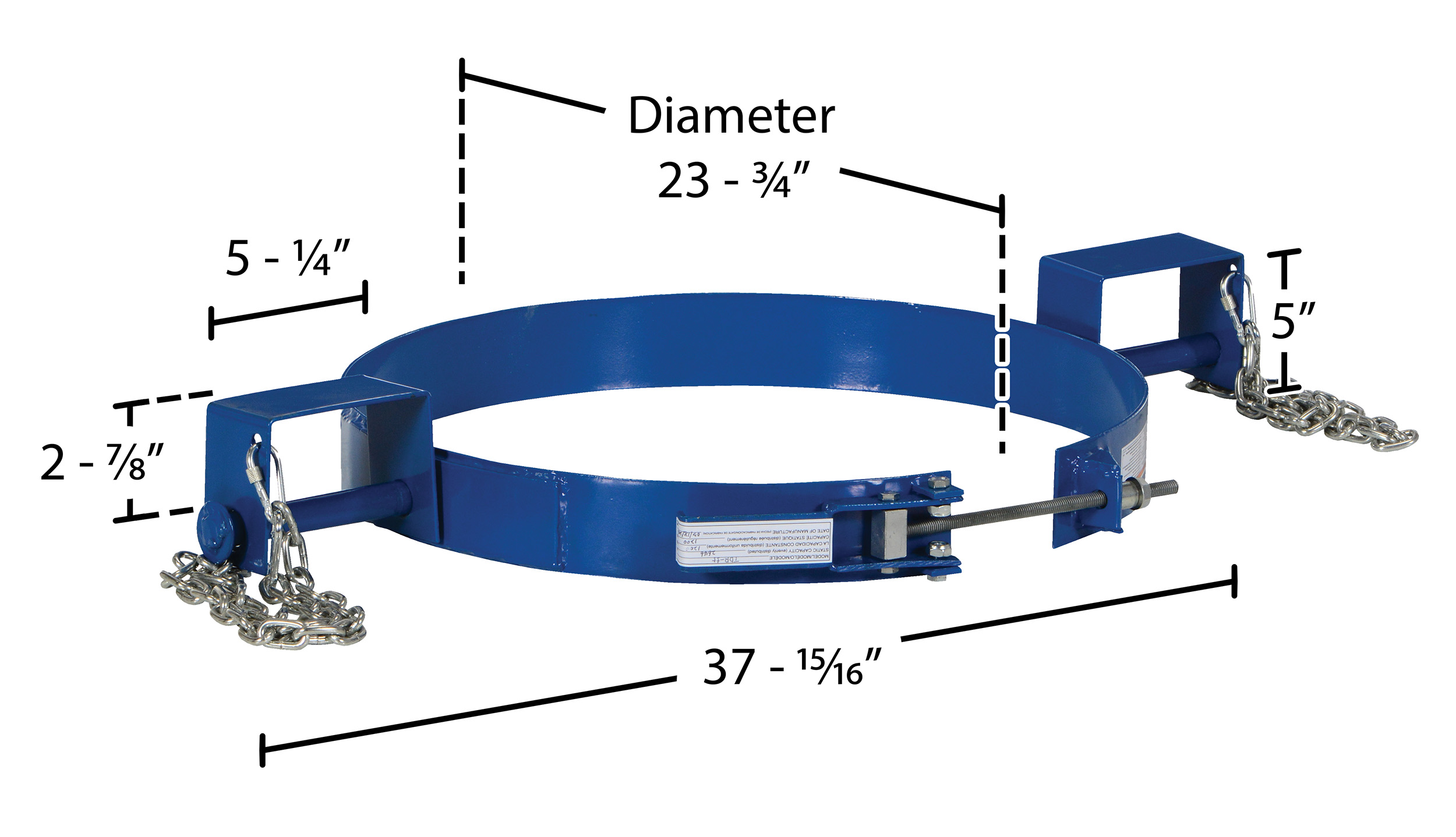 Carbon Steel Tilting Drum Ring 55 Gallon Drum 1,200 Lb. Capacity BlueEasily transport steel drums with your fork truck and the tilting drum ring. Pivoting fork pockets allow you to manually rotate drum to dispense light materials. To use, slip the band over the belly of the steel drum and tighten the lock to secure the band around the belly of the drum. Welded steel construction.