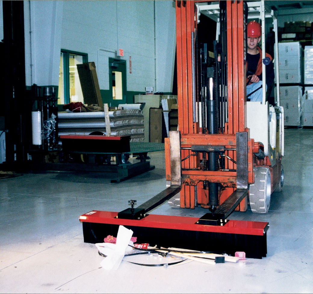 Aluminum Fork Truck Mounted Sweeper 48 In. Wide Brush Red/BlackThe Fork Truck brush sweeper is ideal for interior and exterior commercial sweeping. Great for cleanup applications; docks, warehouses, and parking lots. Lightweight aluminum body with polypropylene bristles. Red powder coat finish. Attach unit by sliding forks into pockets and securing with locking screws.